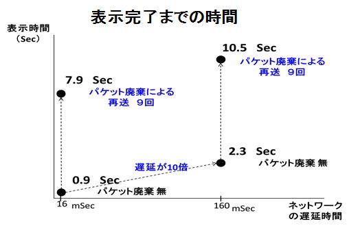 本事例では遅延時間の影響はそれほどでもありませんが、パケット廃棄による影響は大きい結果となっています。
